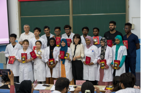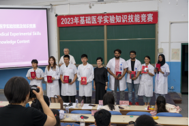 国际教育公司王顺副经理在比赛结束后总结讲话中指出,本次比赛是迎合公司创新发展三年行动计划的一个具体举措,比赛形式新颖,过程精彩,充分展示同学们的精湛专业技能和丰富理论知识,同学们要以此次比赛为契机进一步锻炼提升自身实验技能,语言表达能力,逻辑思维能力。公司也将结合专业和课程特点,持续开展此类比赛活动,使同学们在活动中不断夯实基础医学专业知识,切实将教学创优工程走深走实。