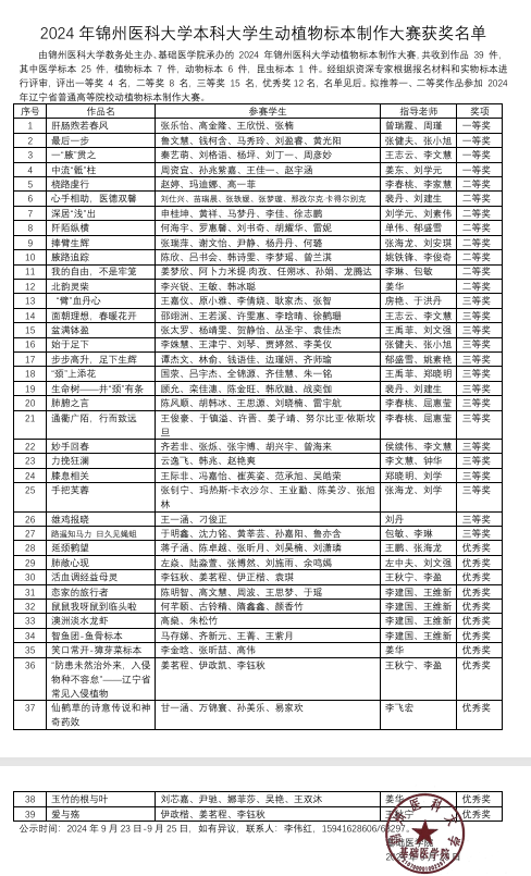 2024年伟德官网bv1946本科老员工动植物标本制作大赛获奖名单