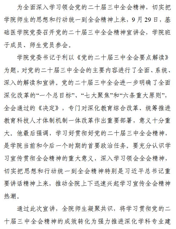 公司党委召开党的二十届三中全会精神宣讲会